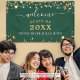Create a class reunion welcome banner sign featuring the title WELCOME in a modern handwritten script typography, class of year and name of your school, college or university or other custom text accented with gold stars and string lights against an editable dark green background you can change to your school colour. CHANGES: Change the background colour or any text font style, size, colour, spacing and placement in EDIT. BANNER OPTIONS: The sample is shown in the 3x5' size; other sizes are available on the ordering page as well as the option of transferring the design to a foam board, poster, tapestry or other product or have the designer convert it to a DIGITAL DOWNLOAD file for printing locally BEFORE ordering. ASSISTANCE: For help with design modification/personalization, colour change, resizing, transferring the design to another product or if you would like coordinating items, contact the designer BEFORE ORDERING via Zazzle Chat or makeitaboutyoustore@gmail.com.