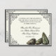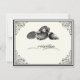This vintage artwork has been design for a modern and contemporary wedding collection. There is a complete ensemble of products and can be created in several colorways. If you would like it to match your wedding let us know via email and we'll be happy to assist you. This design consists of a black double bordered edging with corner etching ornaments. There is a soft cream colour background and three vintage artwork shells in an gold oval frame with a black background. On the reverse side is a beautiful etching of a vintage shell and the elegant calligraphied script words "United in Marriage." PAPER SELECTION RECOMMENDATIONS: In addition to the standard paper offered, this would be exquisite with the Champagne or Ice Metallic Papers, Silver or Gold Metallic or any of the premium papers. YOU MIGHT ALSO ENJOY: