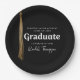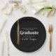 Personalize these graduation paper plates with the graduate's name, school and class Year. Impress your guests with this sophisticated design featuring black, white and gold grad cap tassel.