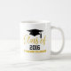 Cette tasse comporte un casquette noir d'obtention du diplôme, la classe de mots de en l'or, l'année de l'obtention du diplôme dans le noir et le nom d'école peut être ajouté en or.