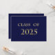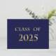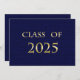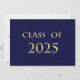 Classe de 2025 carte avec texture bleue pour l'arrière - plan et or pour le nom. Le dos est une texture bleue avec des lettres d'or pour les annonces de graduation.