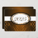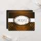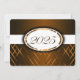 Invitation de graduation Brown et blanche avec des rayures brun clair et foncé et un ruban blanc qui traverse pour montrer l'année de graduation. Le dos de la carte est brun avec une police blanche pour que les gens puissent remplir les annonces de remise de diplômes.