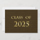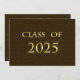 Classe de 2025 carte avec texture brune pour l'arrière - plan et or pour le nom. Le dos est une texture marron avec des lettres dorées pour les annonces de graduation.