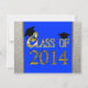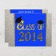 "Classe élégante et chique de 2014" en beau texte d'or avec deux casquettes noirs d'obtention du diplôme sur la fête de remise des diplômes, invitations, ou annonces. Le bel argent avec les frontières d'or de regard de parties scintillantes imprimées par or décorent l'avant et le dos. Ajoutez facilement votre texte fait sur commande au dos de la carte avec les mêmes frontières d'argent et d'or sur un arrière - plan de bleu royal avec le texte blanc prêt à être customisé. Changez facilement l'arrière - plan sur l'avant et/ou de nouveau à n'importe quelle couleur. Cliquez sur juste dessus la "personnaliser il" et alors "éditez" et alors "arrière - plan" pour choisir une couleur. Rappelez-vous l'occasion spéciale avec ces invitations faites sur commande d'obtention du diplôme.