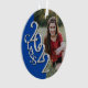 Ajoutez une photo à cet ornement de tenue de remise de diplômes en argent et bleu "Classe 2022". Customisez avec un nom et un texte au dos ou ajoutez une autre photo.