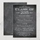 Ce Faire-part de graduation branché 5x7 / Invitation de fête a un design de tableau de bord de style vintage. En haut et en bas, il y a un design tourbillon florissant. La Classe de 2015 est écrite en haut, avec tous vos Faire-part de la Cérémonie de graduation personnalisable / Détails de la fête au milieu.