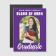Cet aimant moderne violet blanc personnalisé pour faire-part de deuxième cycle photo avec votre nom de lycée ou de collège pour la classe de 2025. Customisez avec votre nom sous l'écriture manuscrite chic et audacieuse et l'arc tendance pour une grande carte magnétique de graduation personnalisée.