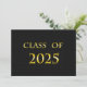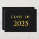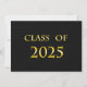 Classe de carte 2025 avec texture noire pour l'arrière - plan et jaune pour le nom. Le dos est une texture noire avec des lettres jaunes pour les annonces de graduation.