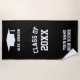 Classe personnalisée de serviettes de plage pour la remise des diplômes. Serviette de plage personnalisée avec le nom de l'école secondaire et l'année d'études supérieures; 2023 etc. idée-cadeau de fête de remise de diplômes pour les diplômés, les étudiants, les aînés, etc. Accessoires d'été pour plage ou piscine. Noir et blanc ou couleur arrière - plan personnalisée. Casquette Tassel et modèle de typographie à grosses lettres.
