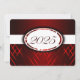 Invitation de graduation rouge et blanc avec rayures rouge clair et foncé et un ruban blanc qui traverse pour montrer l'année de graduation. Le dos de la carte est rouge avec une police blanche pour que les gens puissent remplir les annonces de remise de diplômes.
