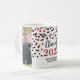 Classe de modèle photo personnalisable de 2025 tasse de graduation avec motif confetti noir et rouge.
