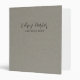 Ce classeur à 3 anneaux présente un design moderne et minimaliste avec une écriture noire classique sur un fond de texture de lin gris faux. Élégant et discret, il est idéal pour une utilisation personnelle et professionnelle. Personnalisez-le avec votre nom et un texte supplémentaire sur la couverture, et ajoutez l'année sur le dos pour un fini personnalisé.