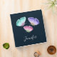 Une classeur personnalisée au design joli. 3 papillons aquarelles, peints en rose, violet et vert. Arrière - plan d'aquarelle bleu foncé.