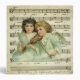 Illustration vintage image religieuse de Noël avec deux anges ; l'antique Victorian die découpé sur des partitions. Un ange joue d'un instrument de musique à cordes, le violon, et l'autre ange musicien tient des partitions. Laissez ce beau design angélique vous aider à célébrer les fêtes de cette saison.