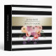 Classeur Aquarelle boho floral or noir blanc rayures