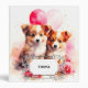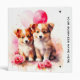 Deux mignons chiots entourés de ballons et de fleurs roses, tous confectionnés dans des teintes d'aquarelle rose délicates. Pure amour chiot !
