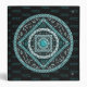 Ce mandala à thème Aquarius est composé d'une pierre turquoise entourée du symbole du signe, de la constellation et du symbole alchimique de l'Air, entre fibres et tissages.