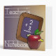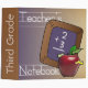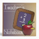Un classeur de professeur coloré pour l'année scolaire, orné d'une pomme rouge avec de mignons vers, d'une ardoise et d'écriture.