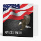 Aigle chauve avec un drapeau américain sur ardoise noire arrière - plan rocheux. Le nom peut être modifié ou supprimé.