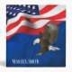 Atterrissage d'aigle chauve avec un drapeau américain sur arrière - plan en cuir bleu. Le nom peut être modifié ou supprimé.
