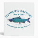 Un Saumon Sockeye aux tons bleus avec le texte "Cyanotic Saumon Bar & Grill Kenai, Alaska" et "Combat Fishing Rest And Relaxation. La pêche au saumon est très populaire, trop populaire en Alaska. Imaginez des centaines de pêcheurs, à peu près côte à côte, longeant les deux rives d'un ruisseau essayant d'éviter de traverser les lignes avec tout le monde dans l'espoir d'atterrir un grand saumon. C'est de la pêche au combat. Après un jour de cela, prenez un peu de R&R au mythique Saumon cyanotique de Kenai. Des contes de pêche y ont raconté...un peu vrai.