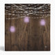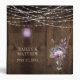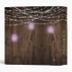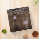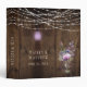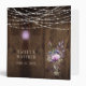 Design rustique avec bois patiné de grange, et lampes à cordes avec un pot en maçon rempli de violet et de fleurs roses avec la verdure correspondante. Personnalisez l'avant et la colonne vertébrale avec vos propres informations.