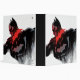 Cette oeuvre saisissante capture Batman alors qu'il émerge de l'ombre, reflétant sa double nature à la fois comme un symbole d'espoir et un avager voilé dans l'obscurité. Le graphique utilise un contraste saisissant entre les noirs profonds et les rouges vifs pour mettre en valeur le personnage intense et complexe de Batman. Le côté gauche montre Batman partiellement obscurci par un effet fumé et texturé, symbolisant le mystère et les qualités énigmatiques de son caractère. Le côté droit révèle son profil déterminé dans des couleurs claires et audacieuses, soulignant sa détermination inébranlable à lutter contre le crime. Cette représentation artistique combine des éléments de design moderne et des images de superhéros classiques, créant une représentation visuelle puissante de la veillée incessante de Batman sur Gotham City.