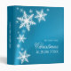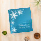 Album personnalisé de Noël de famille avec l'illustration des flocons de neige blancs sur le bleu.