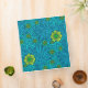 Le classeur dans William Morris vintage, art Nouveau, copie de damassé de souci de feuille et de fleurs, a numériquement augmenté et a coloré, aux nuances de la turquoise, de l'aqua, et du bleu de cobalt, accentué avec le jaune et le vert de chaux, sur un arrière - plan foncé de bleu marine