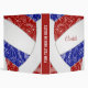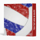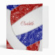 Ce volleyball girly thème 3 anneau classeur pour elle présente l'image abstraite surdimensionnée d'un volleyball qui a des panneaux rouges, bleus et blancs reflété sur la couverture avant et arrière - un doodle motif de paislies, fleurs et plumes en blanc couvre les panneaux rouges et bleus du volleyball - personnalisez avec le nom de l'athlète - par katz_d_zynes