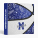 Ce mignon basketball sur le thème 3 anneau classeur est l'image réaliste d'un basketball abstraite surdimensionné qui a recoloré alternant des panneaux bleus et blancs avec des fleurs de doodle délicates dessinées à la main, des plumes et des paislies modelées sur les panneaux bleus du basketball mis en miroir sur la couverture avant et arrière - personnaliser avec le nom de l'athlète et monogramme, lettre de varsity, ou numéro de maillot - par katz_d_zynes