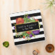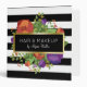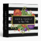 Joli classeur avec les rayures noires et blanches comportant un bouquet d'automne avec les roses oranges et pourpres.