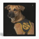 Brown rescue dog with adopter vest. | M | AssetID : 136644845