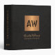 Classeur de bureau élégant en cuir noir (IMPRIMÉ) avec monogramme doré et typographie tendance, écriture manuscrite de style script. ++++++ Facile à personnaliser avec votre nom professionnel personnel ou d'entreprise, vos initiales et texte sur le devant, le dos et l'arrière.