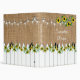Ce classeur de recettes de livres de cuisine avec un arrière - plan de burlap de campagne et des lampes à cordes, ainsi qu'une palissade blanche ornée de tournesols, est l'endroit idéal pour garder vos recettes familiales précieuses. Personnalisez-le avec votre nom !