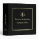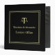 Ce classeur personnalisé moderne et élégant présente un fond noir avec une bordure double carrée. Le devant, le dos et le dos peuvent être personnalisés. Avec un logo de balance de la justice en or, il convient aux consultants en services juridiques, au cabinet d'avocat, à l'avocat, aux conseillers juridiques, au juge et à d'autres professionnels du droit.
