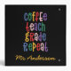 Café, enseigner, grade, répéter enseignant moderne coloré de la typographie arc-en-ciel cadeau. Montrez à votre professeur ce cadeau de Noël moderne ou de fin de mandat utile qui vous intéresse. Très important brins et bobs d'enseignant. Avec lettré à la main script fun moderne, et espace pour leur nom et le nom de votre enfant. La fin de l'année, Noël ou cadeau de vacances parfait pour votre professeur préféré. Les couleurs du texte et être changés pour convenir.