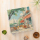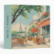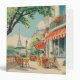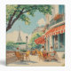 Illustration de charme de style vintage d'une terrasse ensoleillée du café parisien avec ses chaises en rotin, ses auvents rayés rouges et ses vues sur la Tour Eiffel. Ambiance rétro et chaleureuse dans les années 50, c'est un écrin de nostalgie ou de voyage.