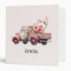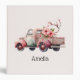 Un classeur avec une jolie illustration d'aquarelle blanche. Couleurs rose et rose. Camion ramassage avec un dossier/lit en bois ancien avec fleurs de cerisier.