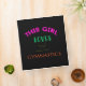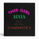 Gymnaste femelle rose, vert, orange et couleur en saut en deux sur le poutre ou le sol, avec les mots "This Girl Loves Gymnastique" citation disant. > Design d'art simple et minimaliste pour la gymnaste féminine ou l'appréciation de l'entraîneur de gymnastique féminine. > Personnalisez-le ! Ajoutez un nom, une photo ou un texte personnalisés.