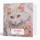 Un classeur avec une belle illustration. Un chat blanc aux cheveux longs qui a l'air royal et élégant. Entouré de fleurs roses, de bijoux en or et en diamant.