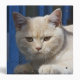 Célébrez l'amoureux des chats ! Cette conception appelée, chat britannique de Shorthair, est une conception merveilleuse pour n'importe qui qui est un amant d'animal familier ! Cette conception est créée d'une photographie d'un chat blond britannique de Shorthair avec les yeux d'or fixant devant une barrière bleue. Un morceau de conversation d'amusement pour votre décor à la maison.