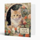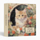 Classeur Chat Jaune Fleurs Roses Monogramme Nom Aquarelle