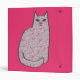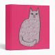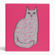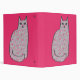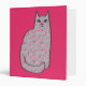 Classeur avec un design de chat moderne du milieu du siècle, rétro, dans un Spoutnik / motif starburst - gris argenté clair / gris avec des accents rouge, rose fuchsia et blanc, souligné en noir, sur un arrière - plan rose fuchsia profond
