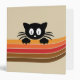 Illustration de style rétro Abstrait avec rayures jaunes, orange, rouges et marron et décoration de chat noir mignon sur arrière - plan beige pour chaque chat et amant rétro. Il est facile de le customiser en ajoutant votre nom/monogramme, etc.