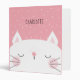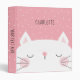 Classeur rose avec un chat blanc avec un nez rose et les taches de rousseur roses mignonnes sur un fond rose avec les points blancs. Ajoutez le nom de votre enfant !