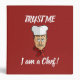Chef avec casquette, collier rouge et texte personnalisé.