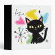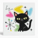Illustration colorée de style abstrait du milieu du siècle avec chat noir, étoiles noires et formes géométriques colorées décoration sur arrière - plan blanc