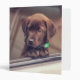 mignon, chiot de laboratoire au chocolat regardant par la fenêtre de voiture