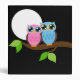 Deux adorables chouettes perchées sur une branche d'arbre. Des designs "Nuit" et "Jour" sont disponibles. Art © Design HeartLocked